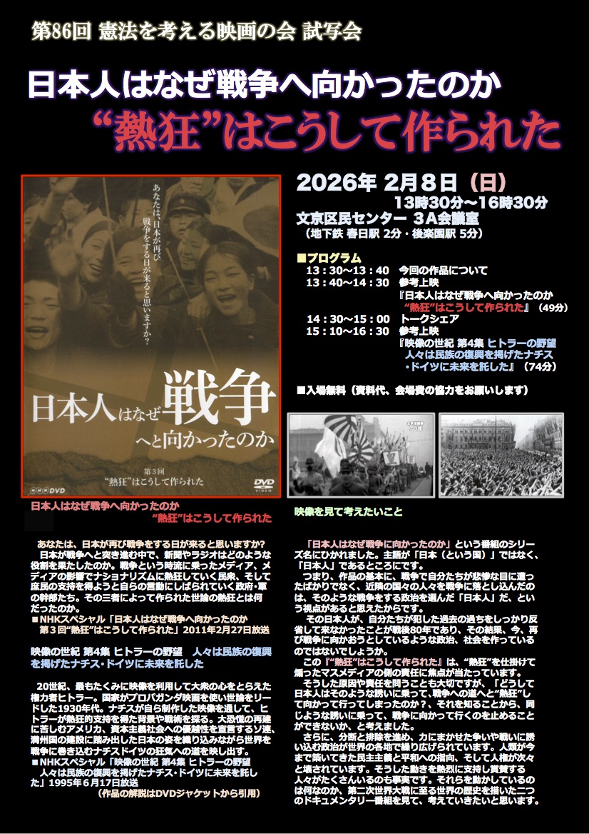 第86回憲法を考える映画の会「日本人はなぜ戦争へ向かったのか “熱狂”はこうして作られた」